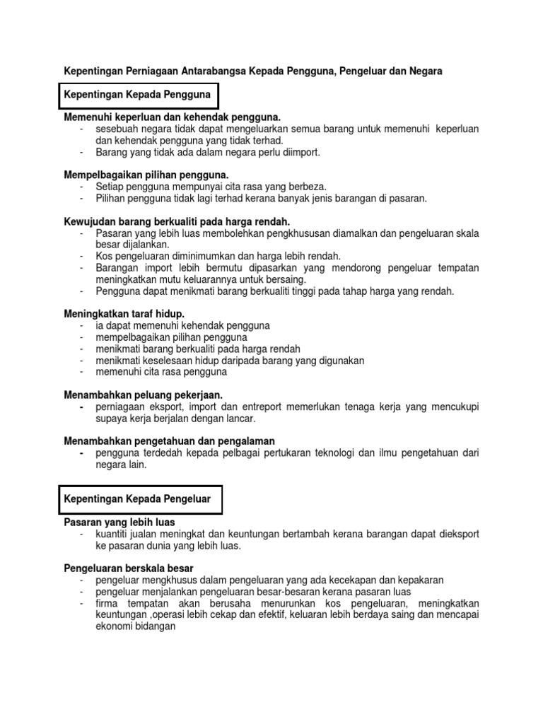 Kepentingan Perniagaan Antarabangsa Kepada Pengguna
