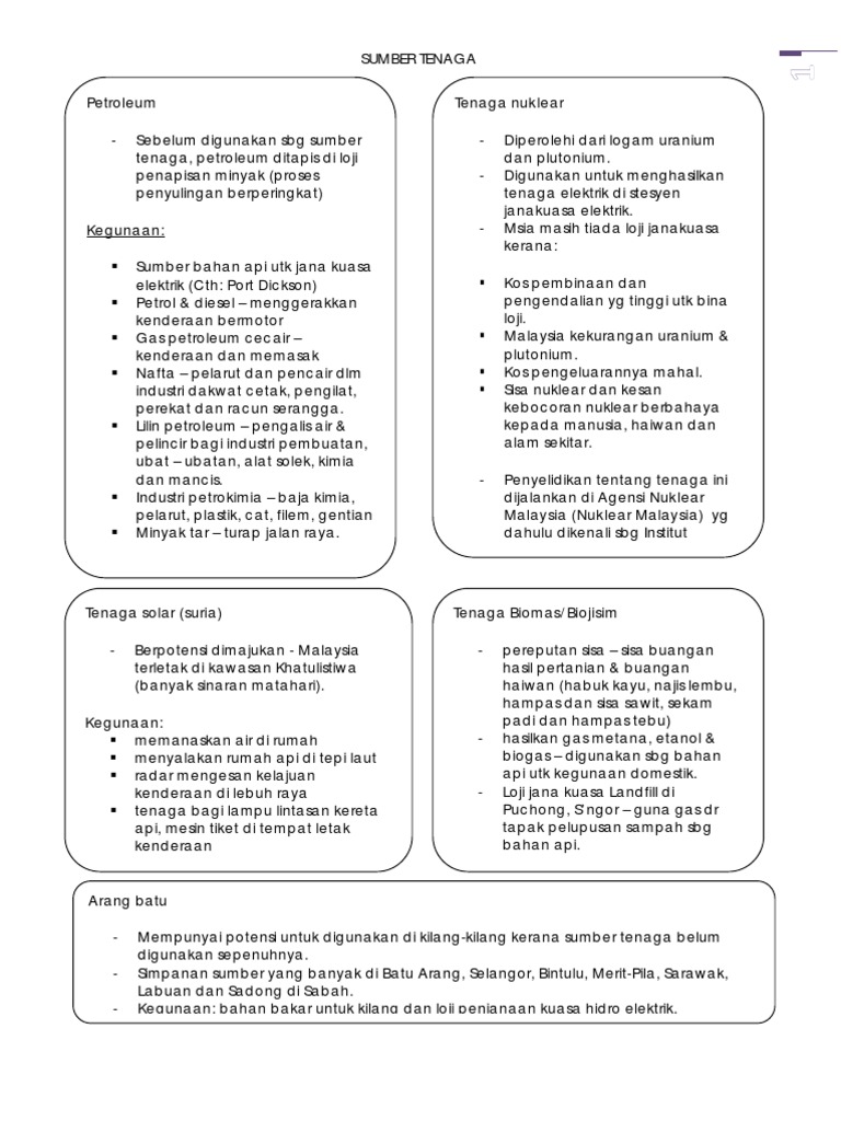 Nota Geografi Tingkatan 3 Sumber Tenaga