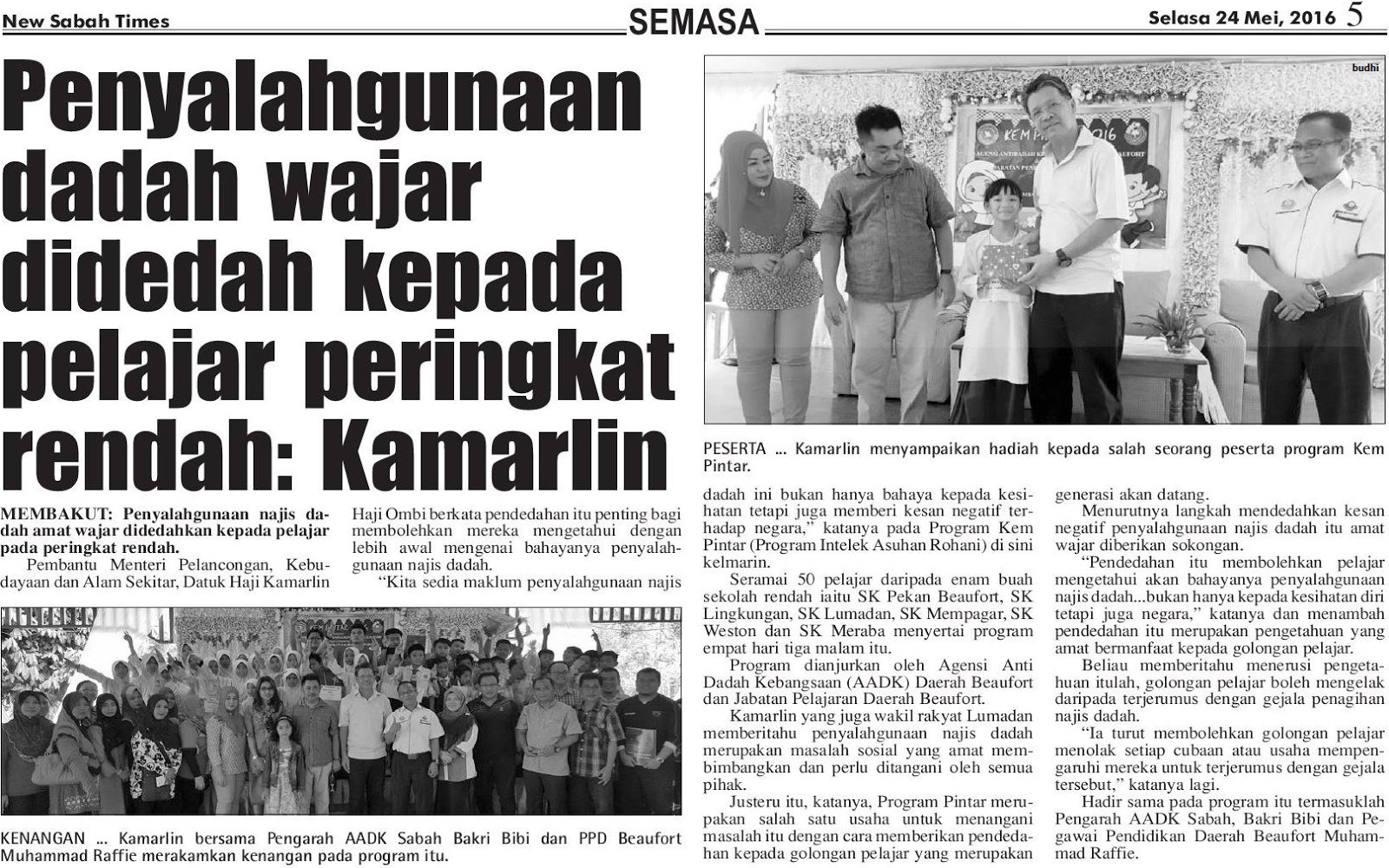 Blog Koleksi Akhbar Pendidikan New Sabah Times Penyalahgunaan Dadah Wajar Didedah Kepada Pelajar Peringkat Rendah Kamarlin