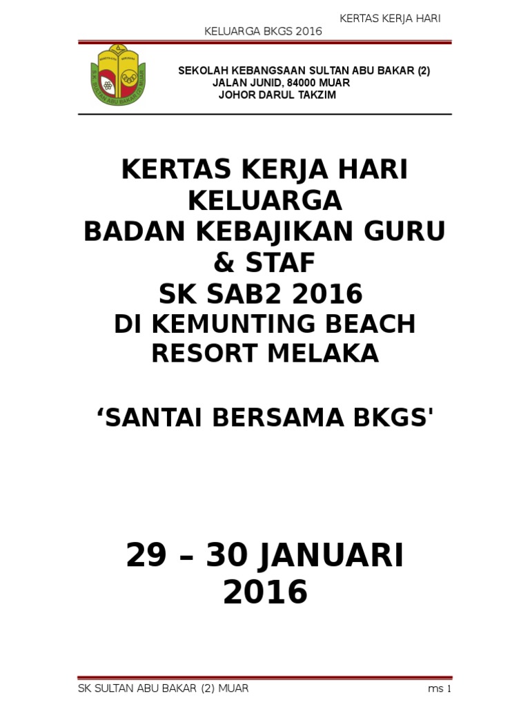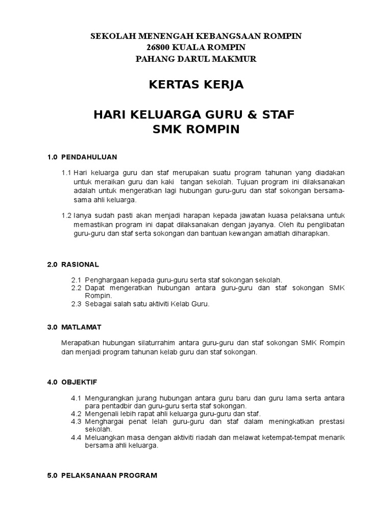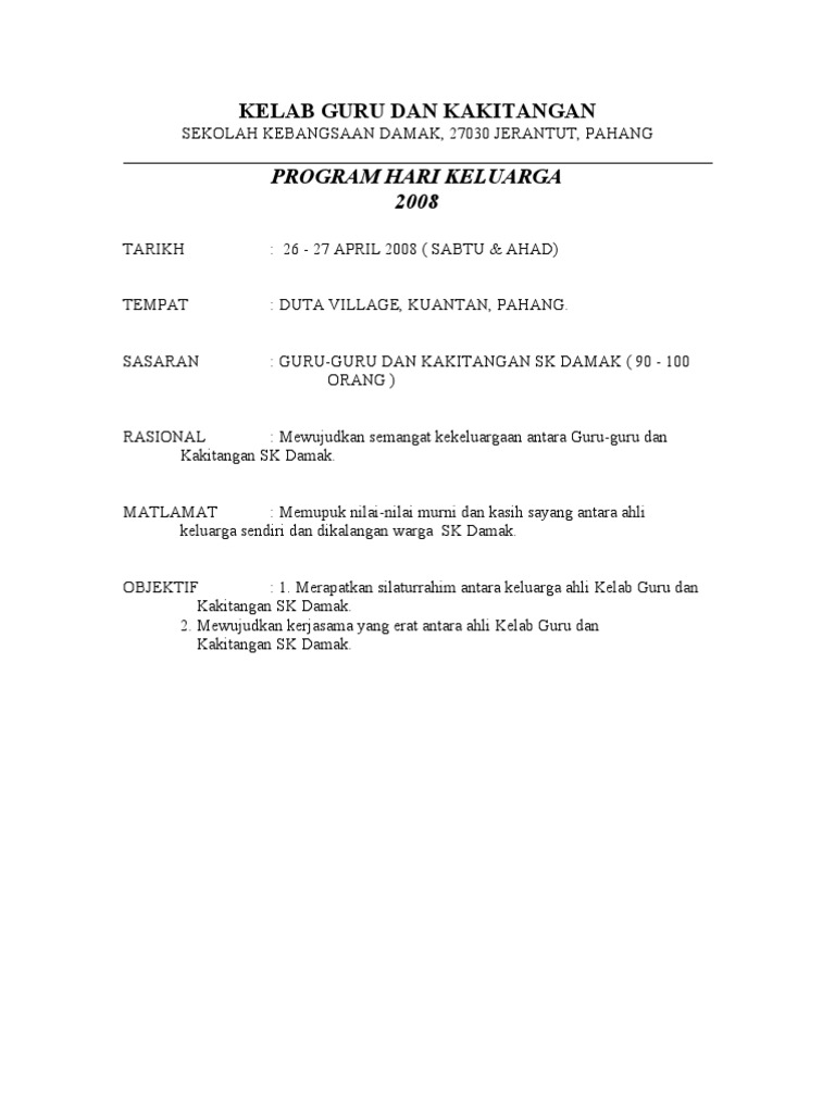 Doc Kertas Kerja Hari Keluarga Dan Sukan Tahunan Jumaadil Talakan Academia Edu
