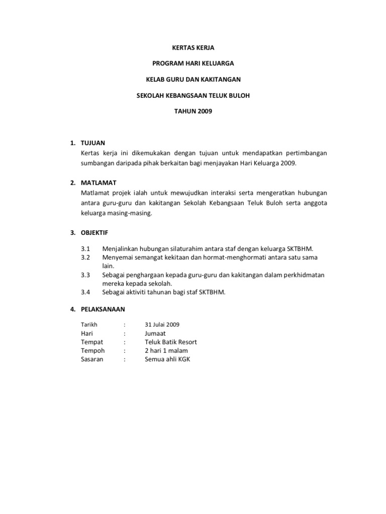 Doc Kertas Kerja Hari Keluarga Dan Sukan Tahunan Jumaadil Talakan Academia Edu