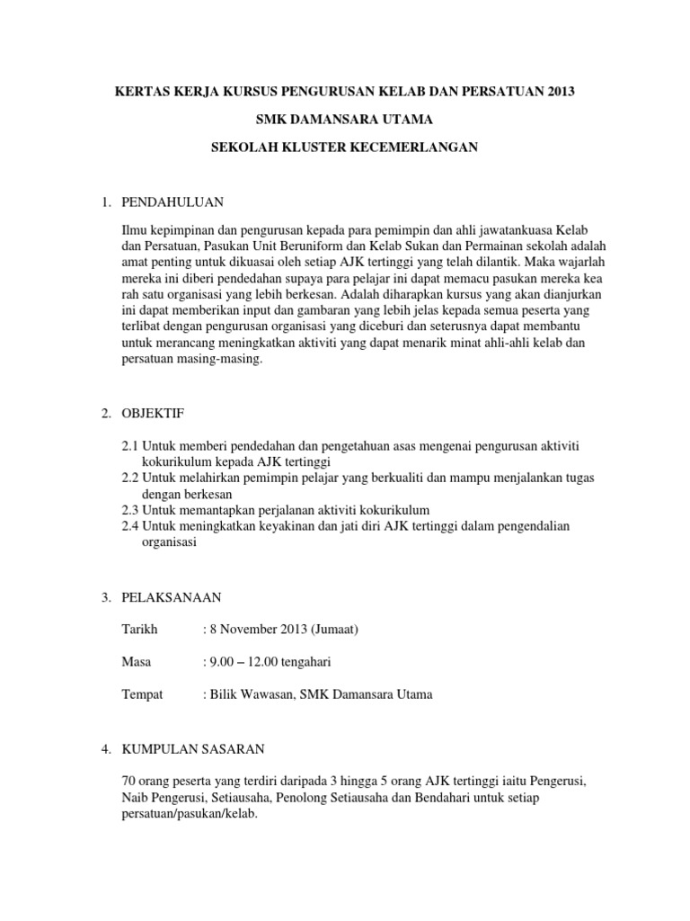 Kertas Kerja Kursus Pengurusan Kelab Dan Persatuan 2013