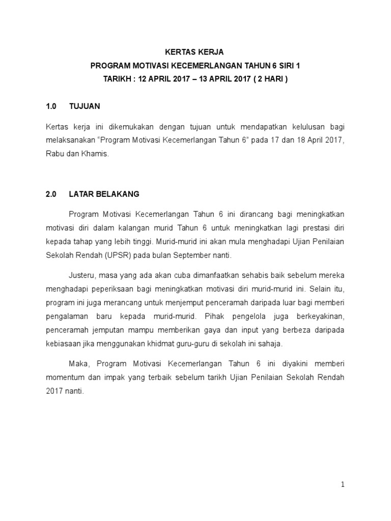 Doc Kertas Kerja Program Motivasi Kecemerlangan Upsr Siri 1 2017 Sk Pos Raya Fadzir Shaharuddin Academia Edu