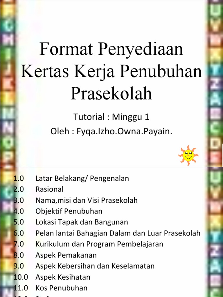 Format Penyediaan Kertas Kerja Penubuhan Prasekolah
