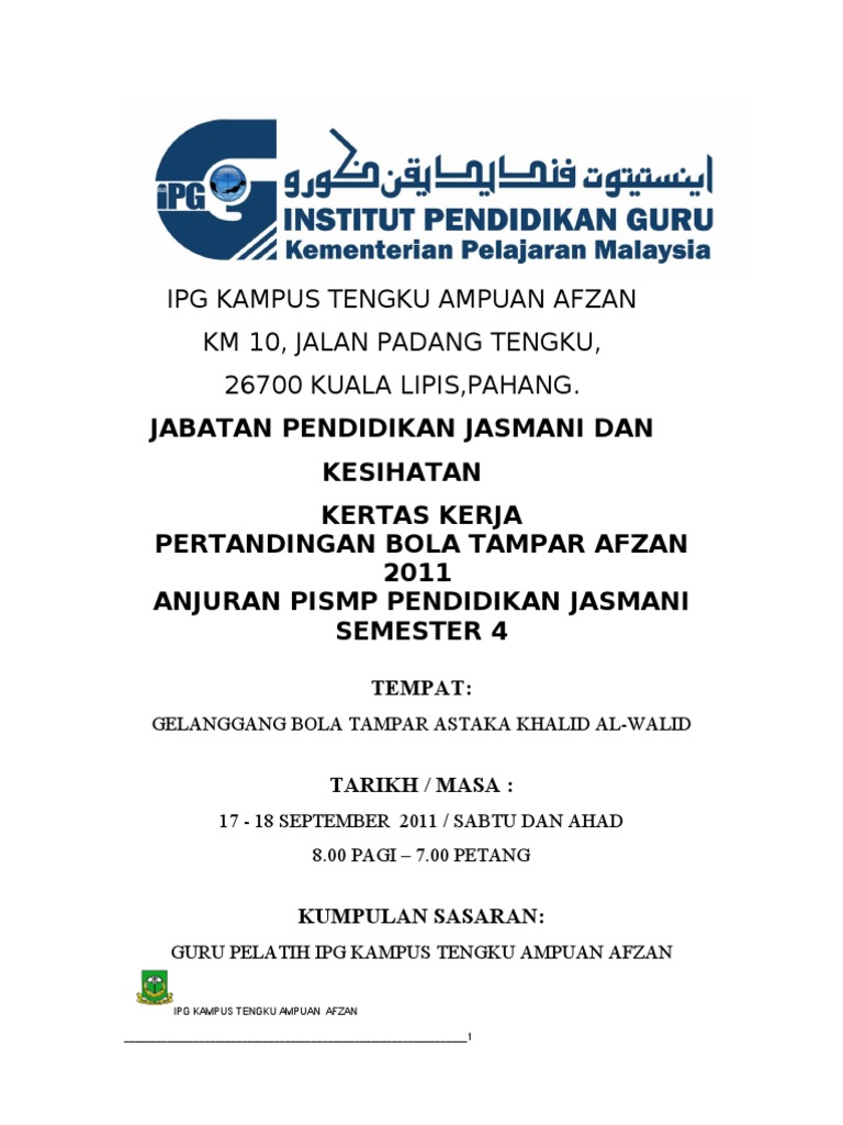 Doc Kertas Kerja Pengelolaan Pertandingan Bola Tampar Contoh Raja Dzirhazmee Academia Edu