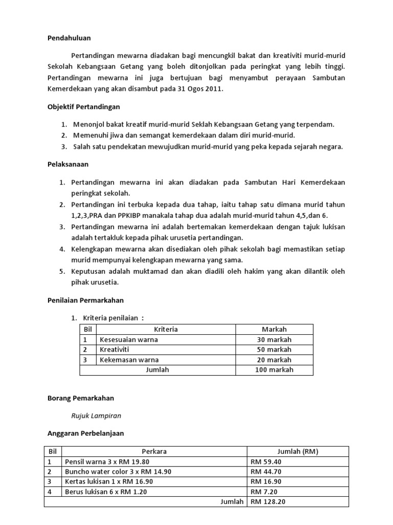 Kertas Candangan Sambutan Kemerdekaan Peringkat Sekolah Docx