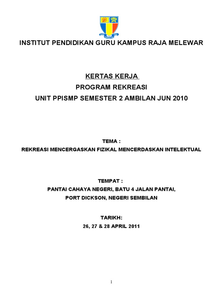 Doc Contoh Kertas Kerja Sukan Rekreasi Mohd Ghaztar Kamarull Ariffin Academia Edu