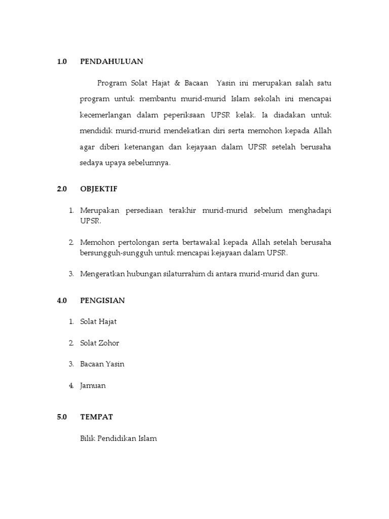 Kertas Kerja Solat Hajat Dan Bacaan Yassin Upsr 2017 Documents