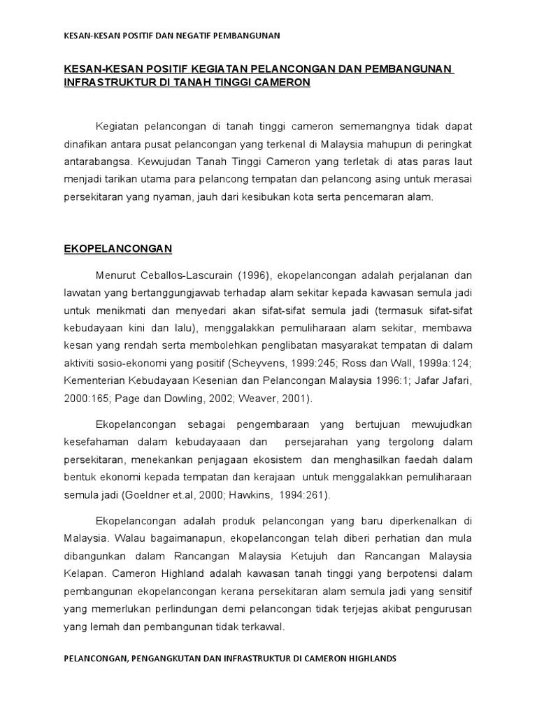 Kesan Positif Dan Kesan Negatif Industri Pelancongan Docx