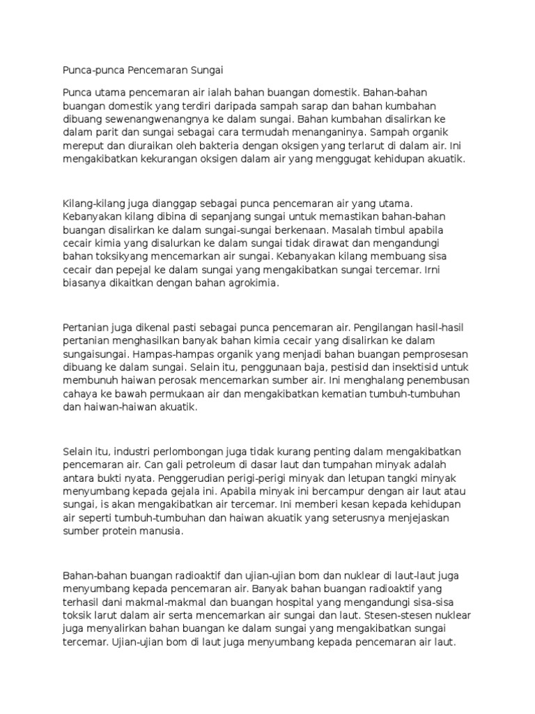 Kesan Kesan Pencemaran Air Terhadap Alam Sekitar Kesan Kesan Pencemaran Air Terhadap Alam