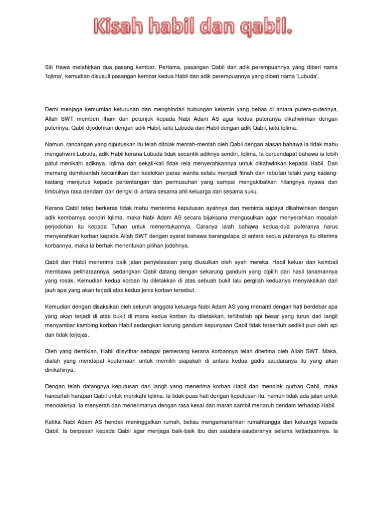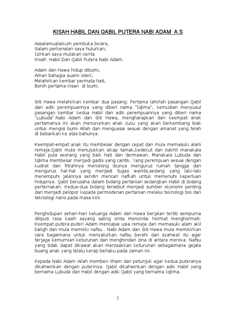 Doc Kisah Habil Dan Qabil Putera Nabi Adam Gavrila Eka Hestiana Academia Edu