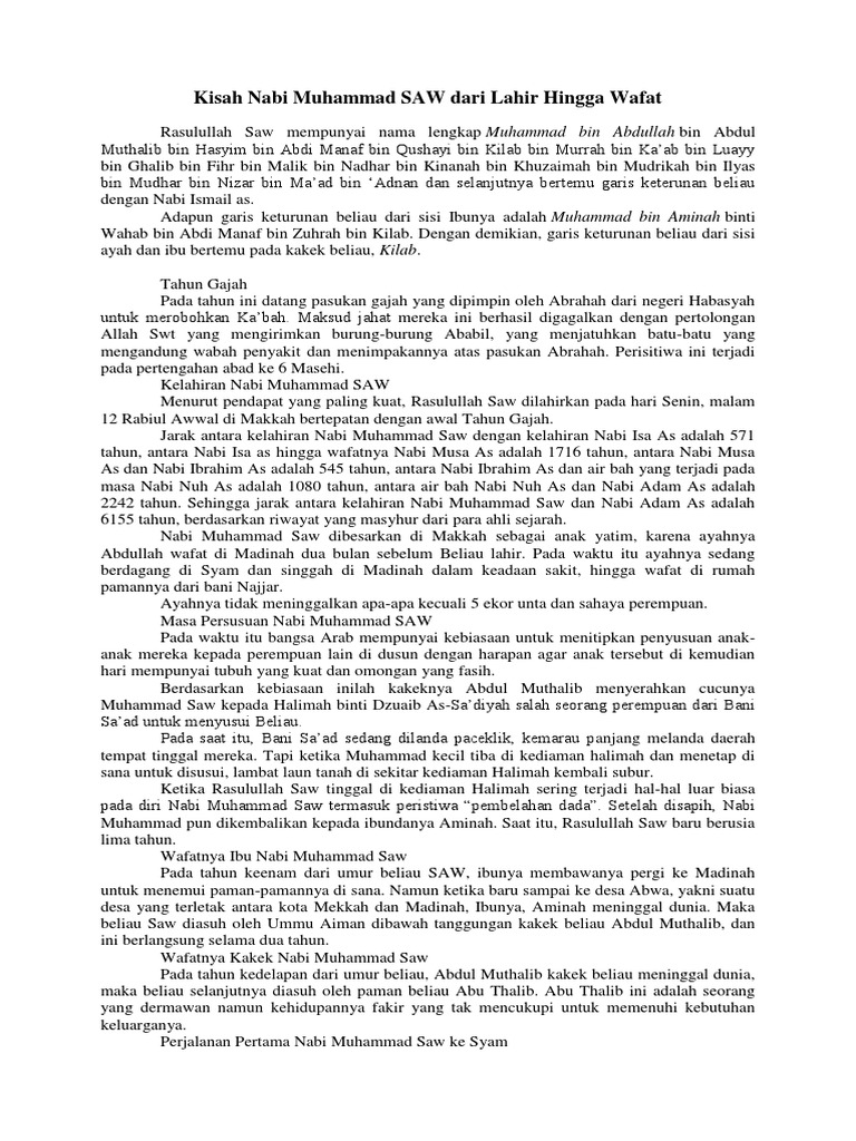 Kisah Nabi Muhammad Saw Dari Lahir Hingga Wafat Doc