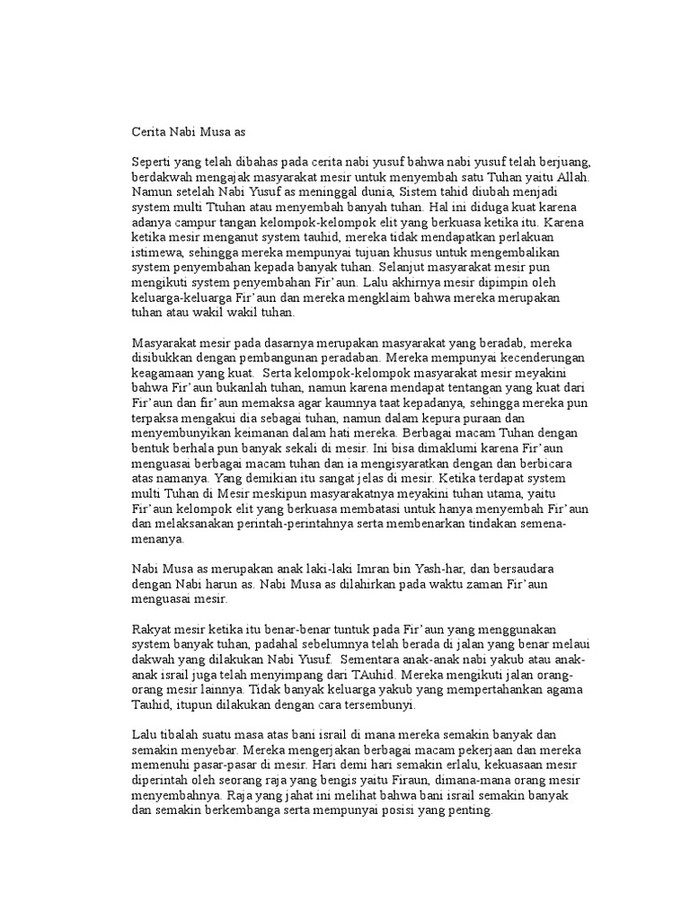 Kisah Nabi Musa As Lengkap Dari Lahir Sampai Wafat Doc