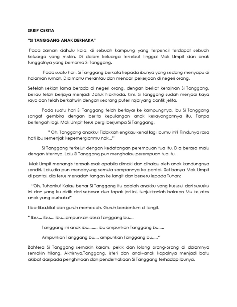 Skrip Cerita Tahap 1 Si Tanggang Anak Derhaka Hei Perempuan Tua Jangan Engkau Pandai Pandai Mengaku Dirimu Itu Ibuku Student Quotes