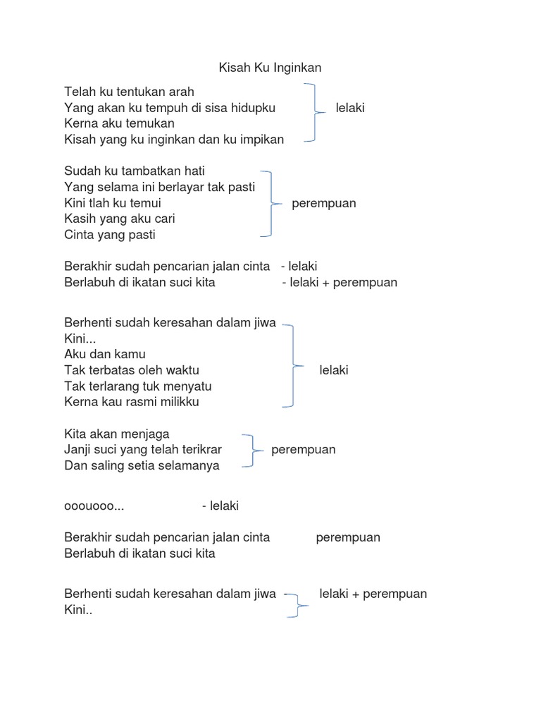 Kisah Yang Ku Inginkan Lyrics
