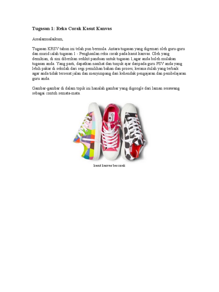 Pendidikan Seni Visual Contoh Reka Corak Kasut Kanvas