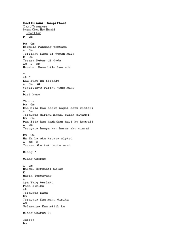 Ultimate jampi chords by hael husaini. Yuk mainkan gitarmu dan selamat bernyanyi. Saya spend banyak masa cari chord lagu ni.