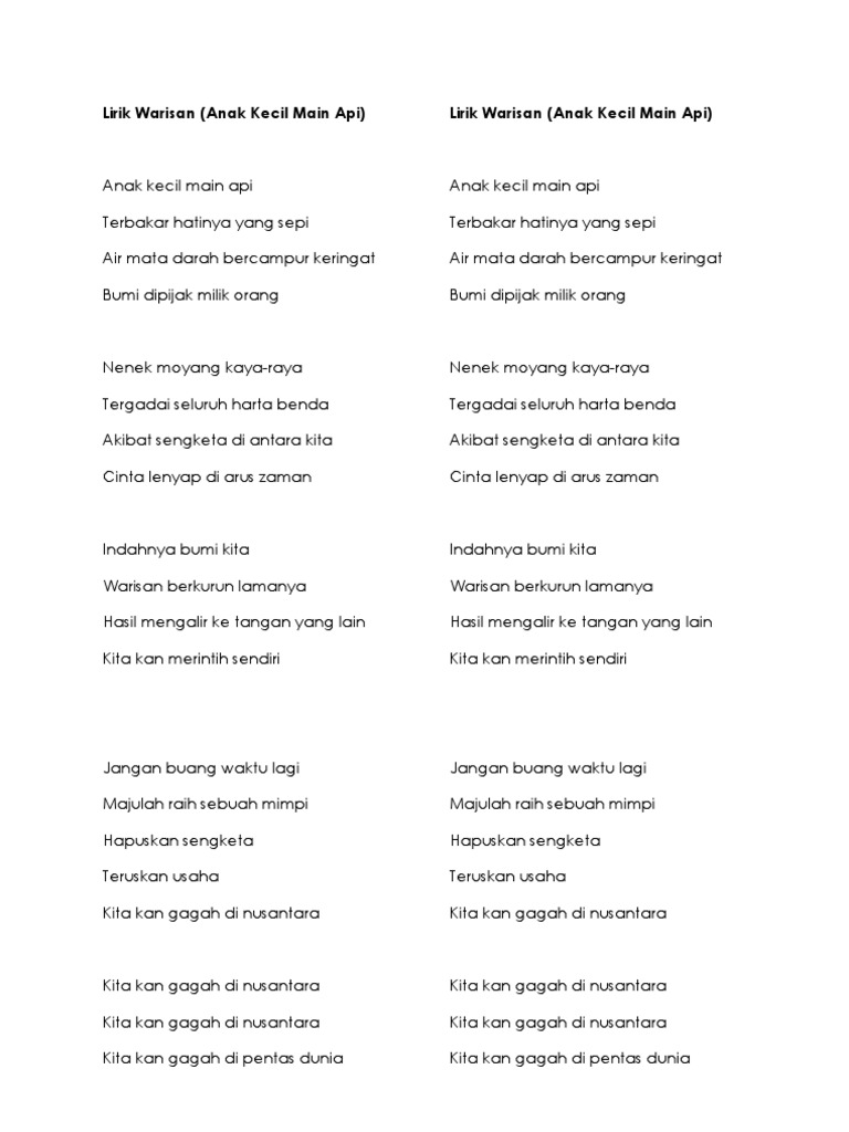 Lagu Warisan Anak Kecil Main Api Lirik Penuh Youtube