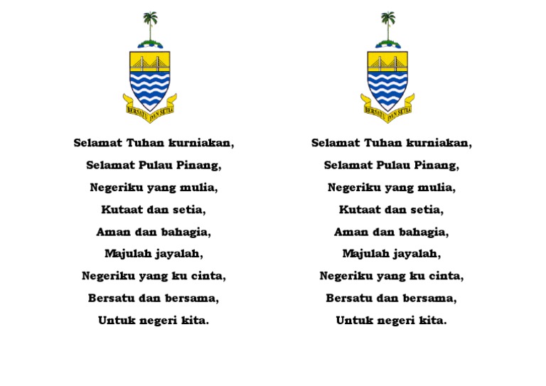 Lagu Negeri Pulau Pinang Untuk Negeri Kita Penang State Anthem Of Malaysia Youtube