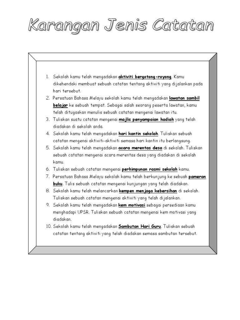Karangan Berbentuk Ayat Untuk Murid Galus