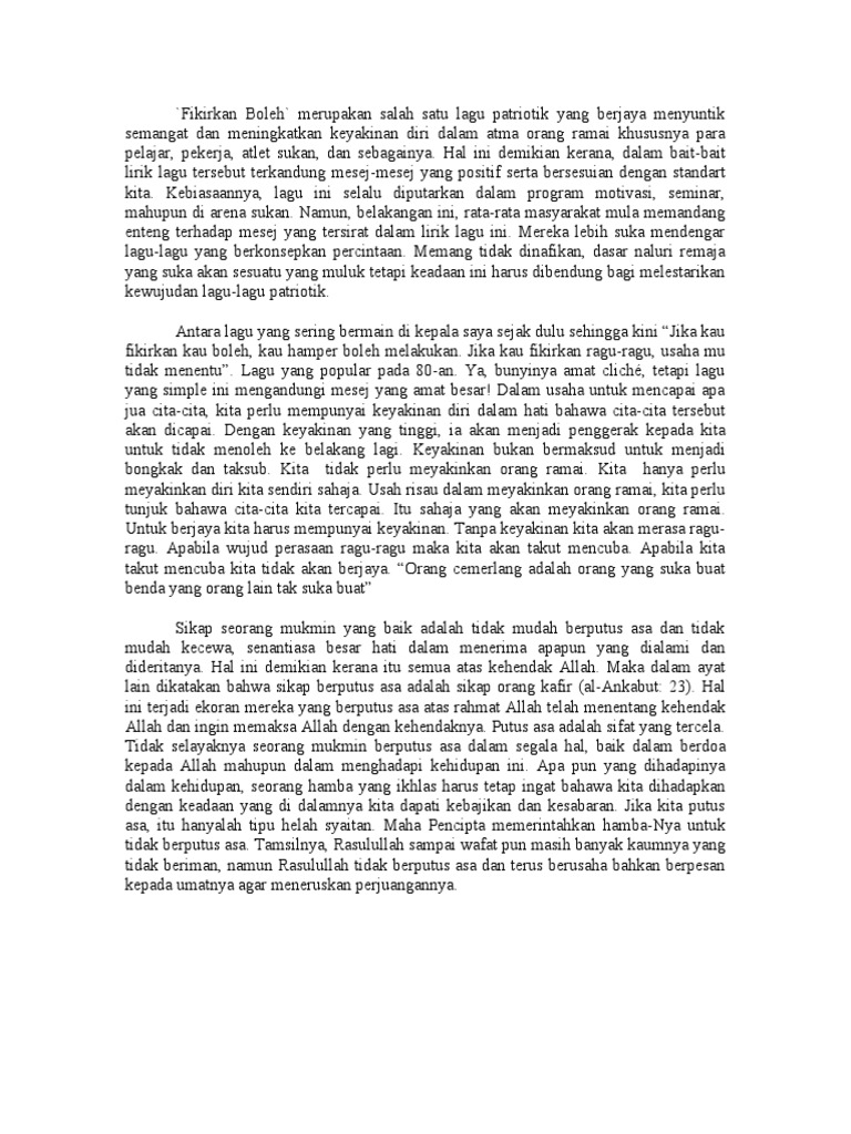 Pastinya banyak lagi lagu lagu rumpun bangsa melayu dalam kategori kategori tersebut yang popular tidak diketahui oleh penulis terutamanya di kepulauan borneo dan di timur kepulauan indonesia yang amat kaya dengan. Setiap negara mempunyai lagu kebangsaan tersendiri yang melambangkan kebanggaan dan kedaulatan sesebuah negara itu. Beliau mahu pelajar mencontohi kesungguha n dan kejayaan penyanyi suen lim wen shun yang berani dan komited dalam mencapai impian dalam bidang nyanyian.