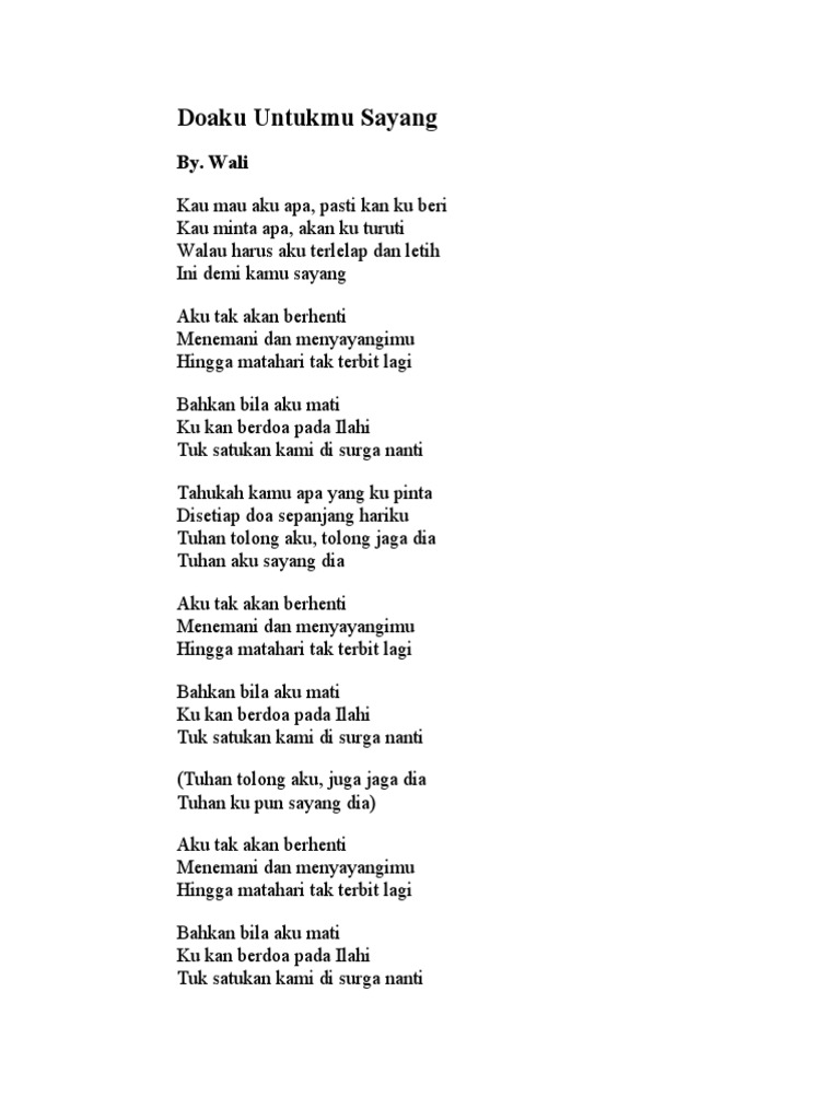 Lirik Dan Chord Lagu Doaku Untukmu Sayang Milik Wali Band Tuhan Tolong Aku Tolong Jaga Dia Sonora Id