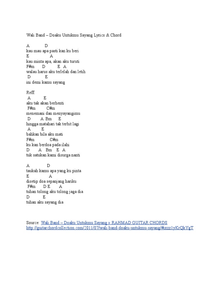 Wali Band Doaku Untukmu Sayang Chord Malay Chord