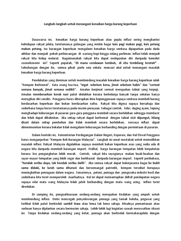 Karangan Pmr Langkah Mengatasi Kenaikan Harga Barangan