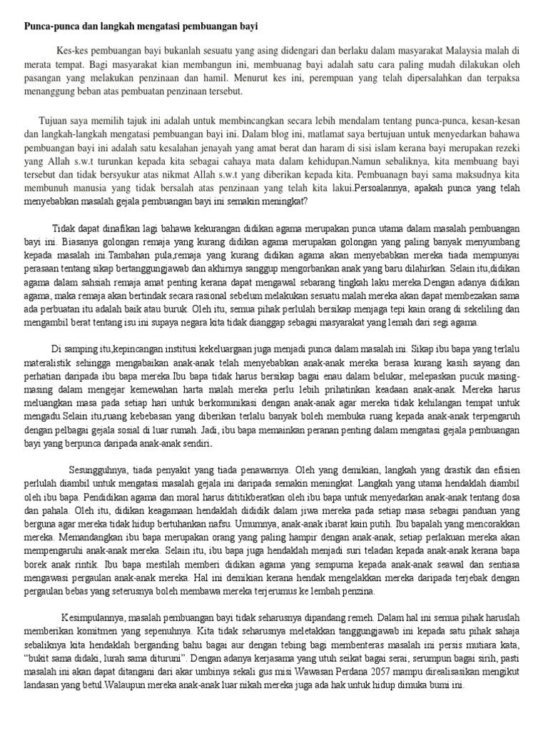Fokus Karangan Spm 2010 Isu Pembuangan Bayi