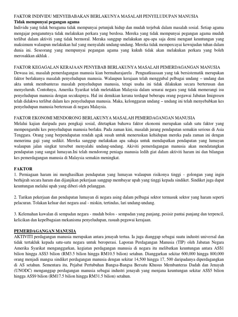 Cara Mengatasi Masalah Pemerdagangan Manusia Docx Cara Mengatasi Masalah Pemerdagangan Manusia Di Malaysia Isu Pemerdagangan Manusia Telah Menjadi Course Hero