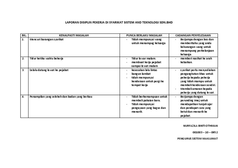 Isu Disiplin Pekerja Docx Masalah Disiplin Pekerja 1 Datang Lewat Ke Tempat Kerja Hal Ini Terjadi Mungkin Disebabkan Fakor Kesesakan Jalan Raya Tak Course Hero