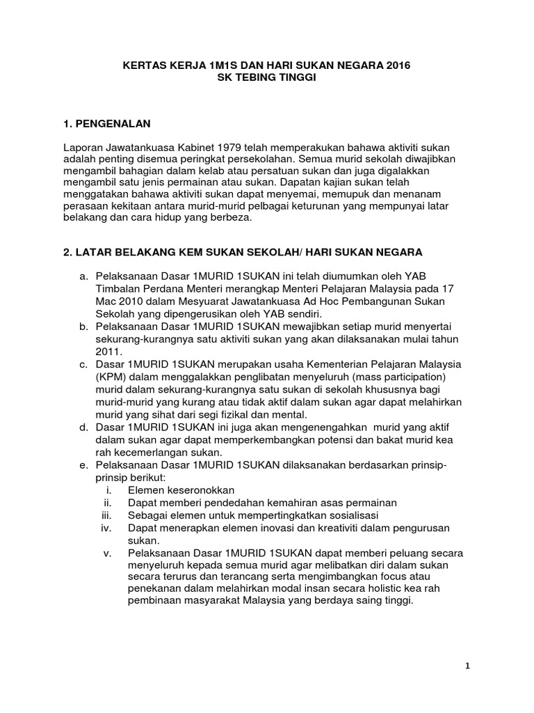 Latar belakang hari sukan sekolah. Shah alam ʃ ɑː ˈ ɑː l ə m ə ˈ l ɑː m is a city and the state capital of selangor malaysia and situated within the petaling district and a small portion of the neighbouring klang district shah alam replaced kuala lumpur as the capital city of the state of selangor in 1978 due to kuala lumpur s incorporation into a federal territory in 1974. Sample for you guys who have to draft reports for hari sukan negara. Perbezaan tujuan inilah yang membezakan sifat sesuatu sukan itu.