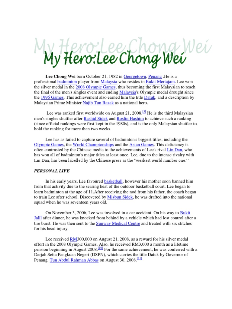 Latar belakang dato lee chong wei. As a singles player lee was ranked first worldwide for 349 weeks including a 199 week streak from 21 august 2008 to 14 june 2012. Semasa kecil beliau suka bermain bola keranjang namun dihalang oleh ibunya.