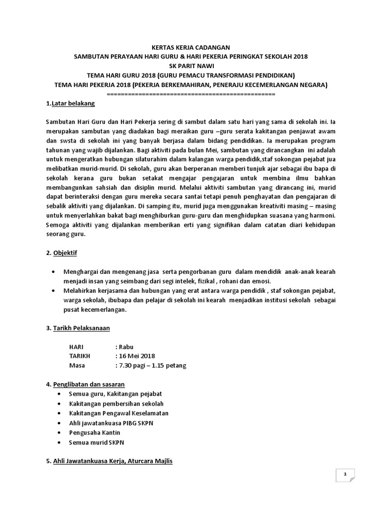 Kertas Kerja Hari Guru Ministry Of Education Guru Acara
