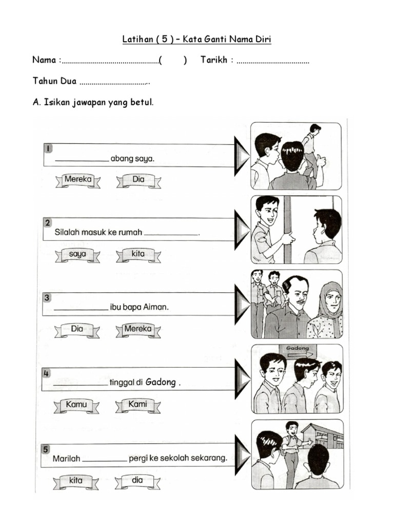 Latih Tubi Kata Ganti Nama Diri Tahun 2