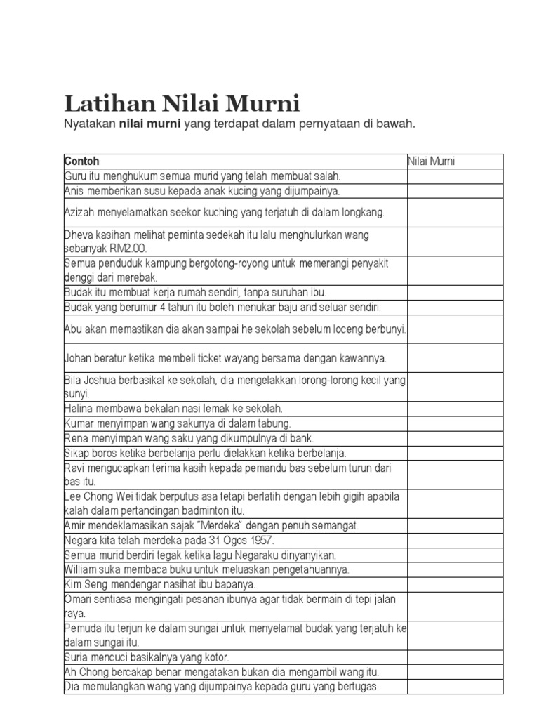 Bahasa Melayu Latihan Latihan Nilai Murni Bahagian C