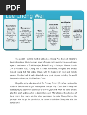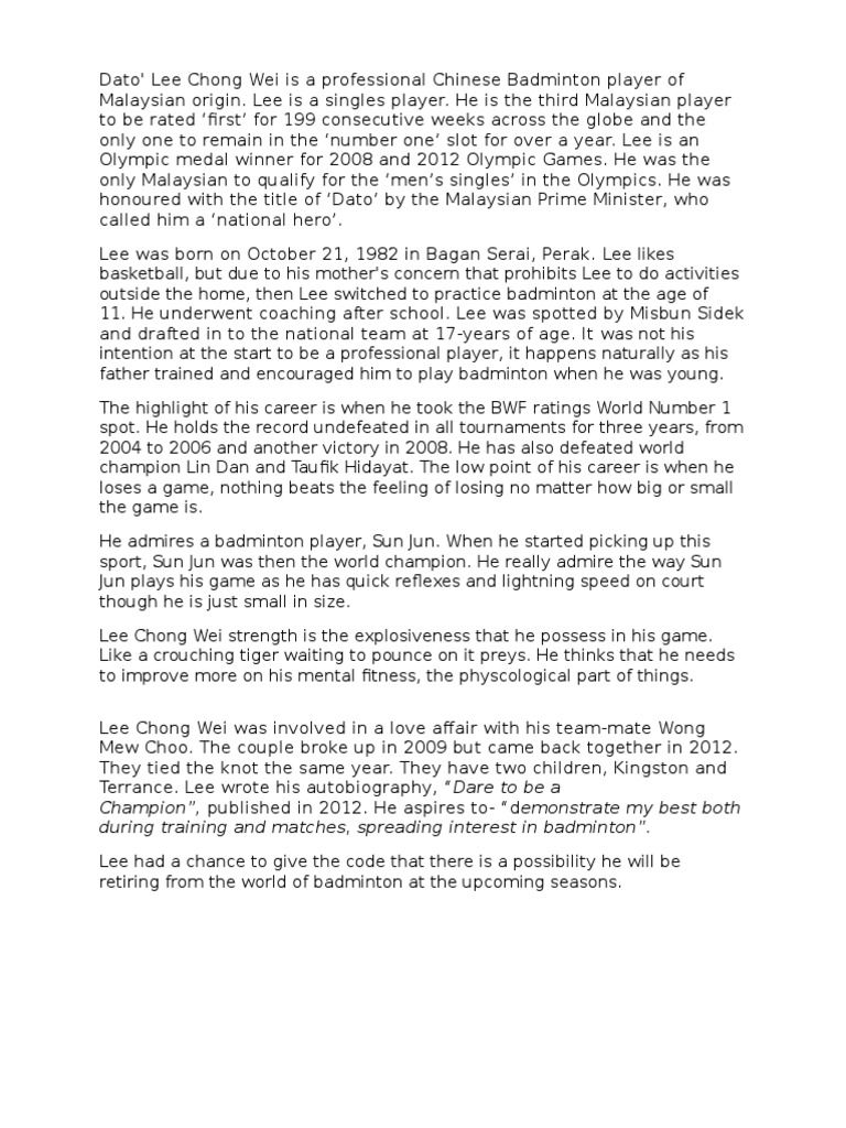 Essay On Lee Chong Wei Brainly In