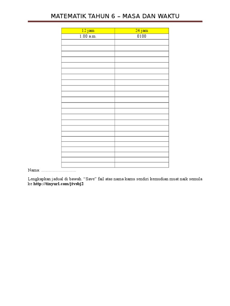 Lembaran Kerja Masa Dan Waktu Tahun 2