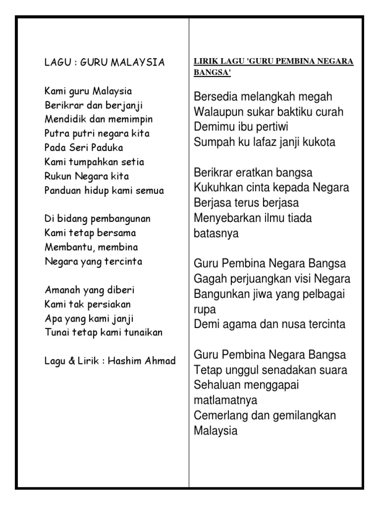 Lirik Lagu Kami Guru Malaysia Santrosondy Com