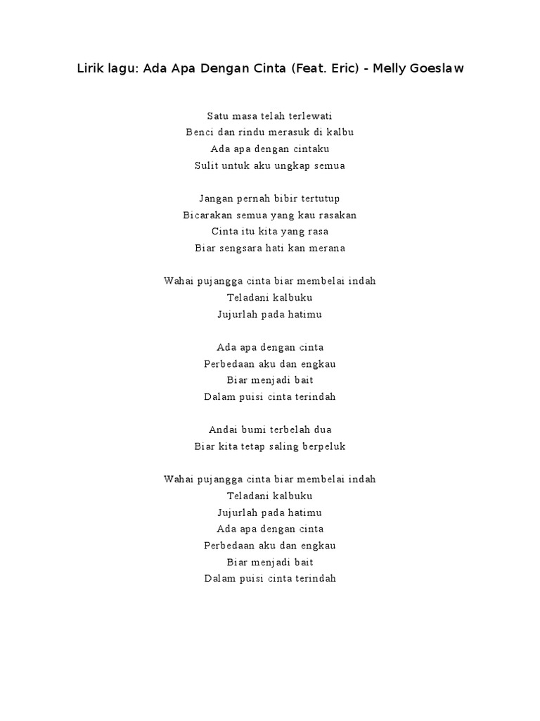 Chord Kunci Gitar Dan Lirik Lagu Ada Apa Dengan Cinta Melly Goeslaw Feat Eric Tribun Padang