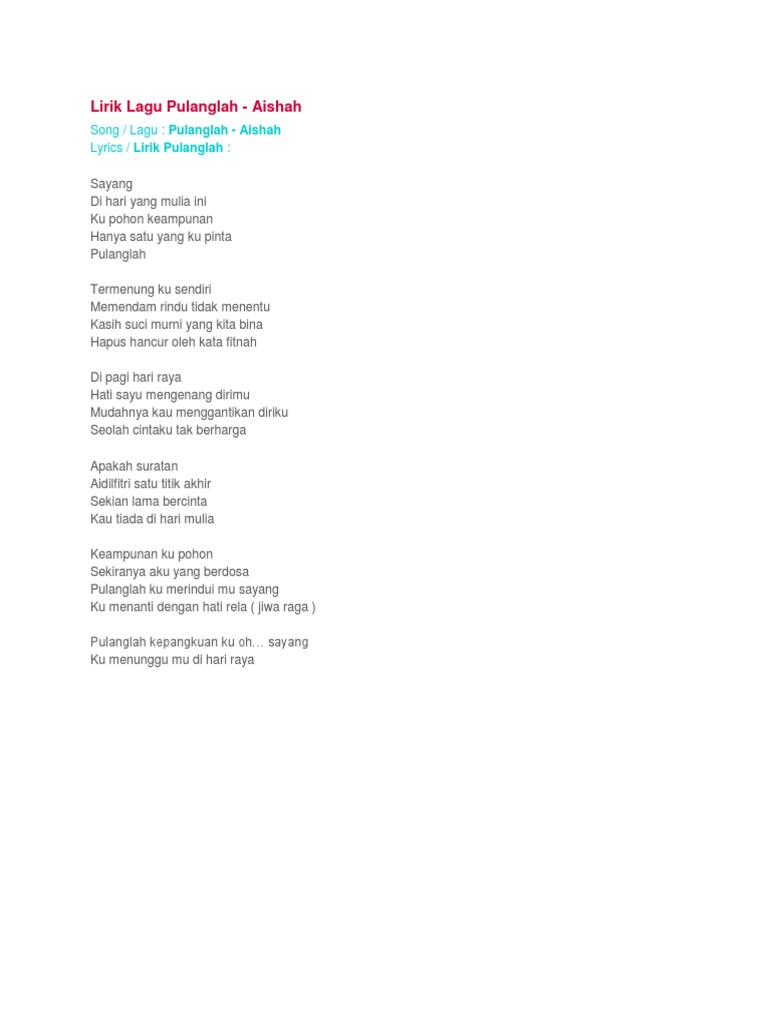 Lirik Lagu Pulanglah