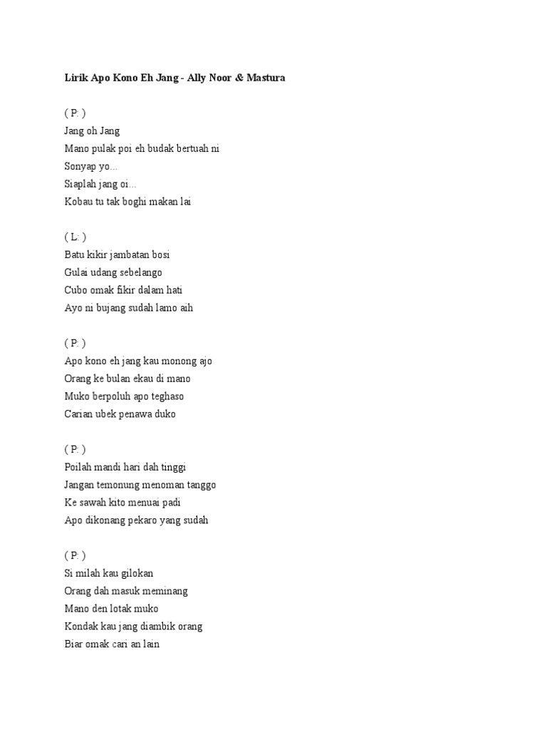 Kumpul Lirik Best Lirik Lagu Apo Kono Eh Jang Ac Mizal Ft Fida Ibrahim