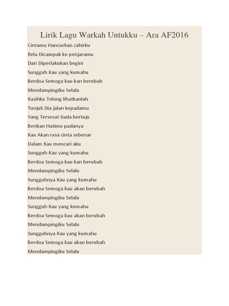 Ara Johari Warkah Untukku Docx Lirik Lagu Warkah Untukku Ara Af2016 Cintamu Hancurkan Zahirku Rela Dicampak Ke Penjaramu Dari Diperlakukan Begini Course Hero