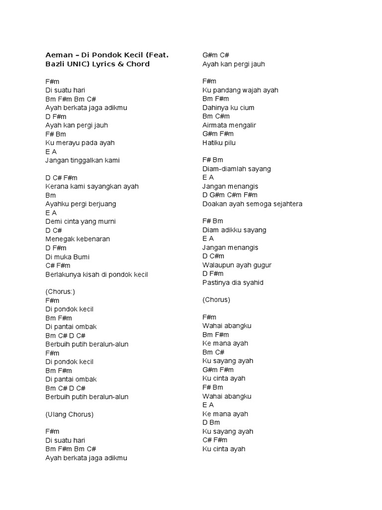 Kord Gitar Aeman Di Pondok Kecil Docx Document