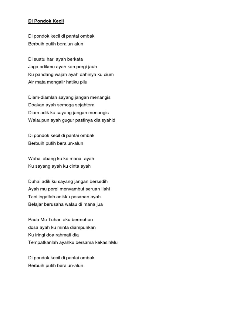 Lirik Lagu Di Pondok Kecil