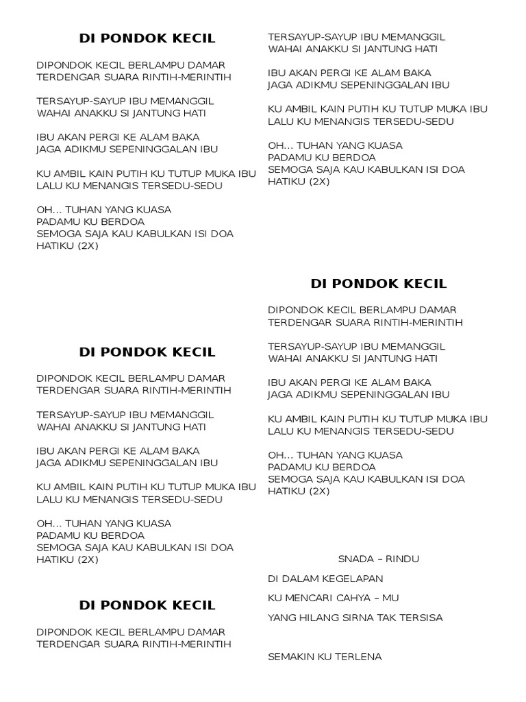 Lirik Di Pondok Kecil Youtube
