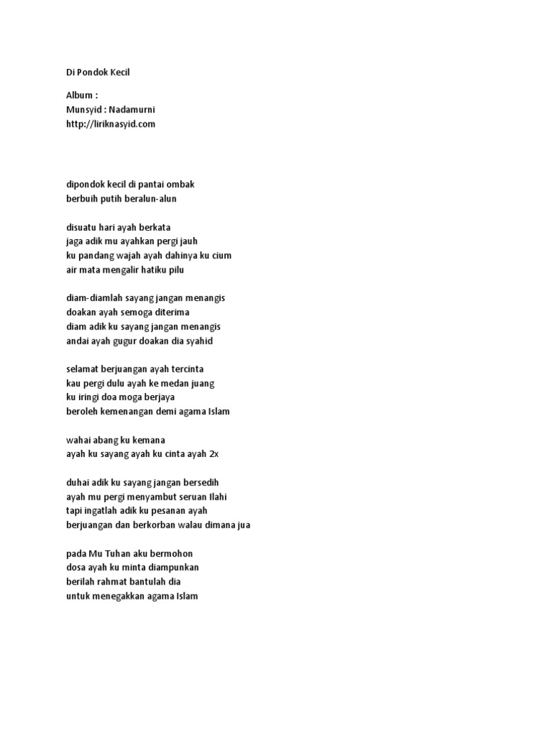 Lirik Lagu Di Pondok Kecil Nadamurni Lirik Sholawat Nabi
