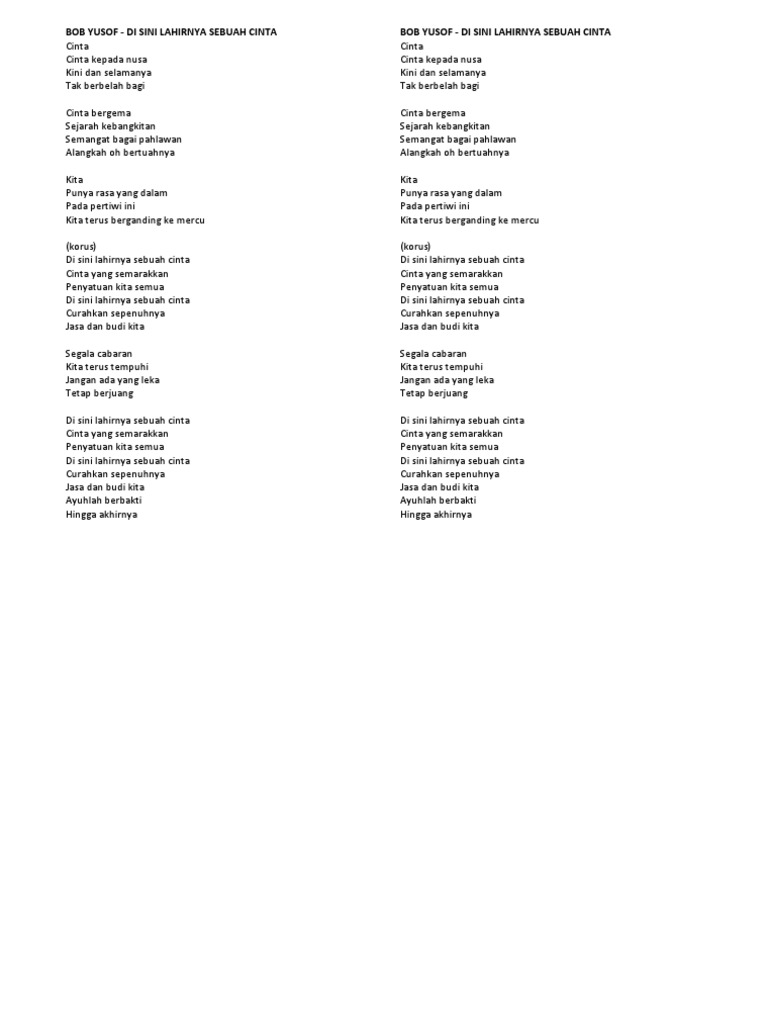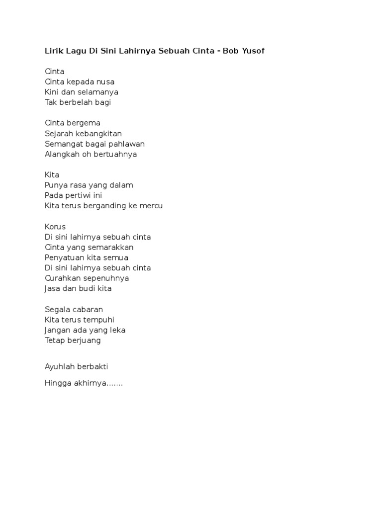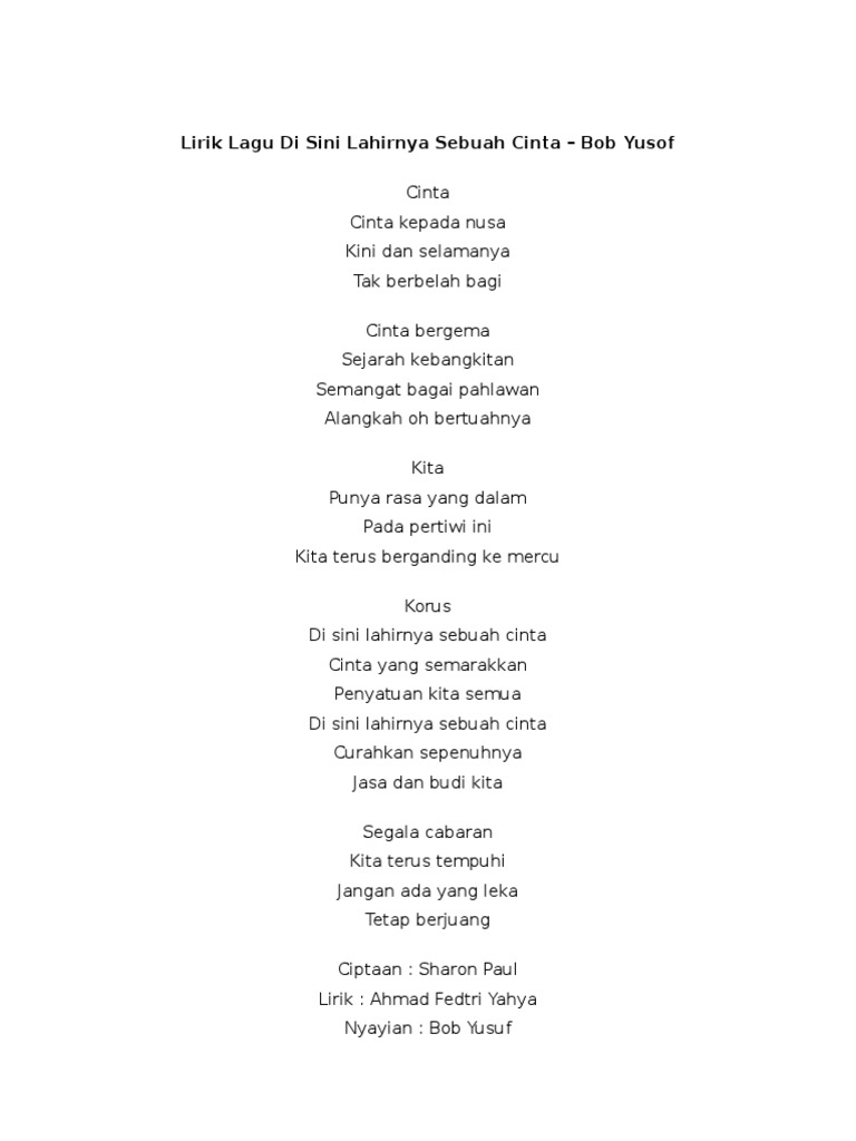 Infomasi Santai Lirik Lagu Di Sini Lahirnya Sebuah Cinta Bob Yusof