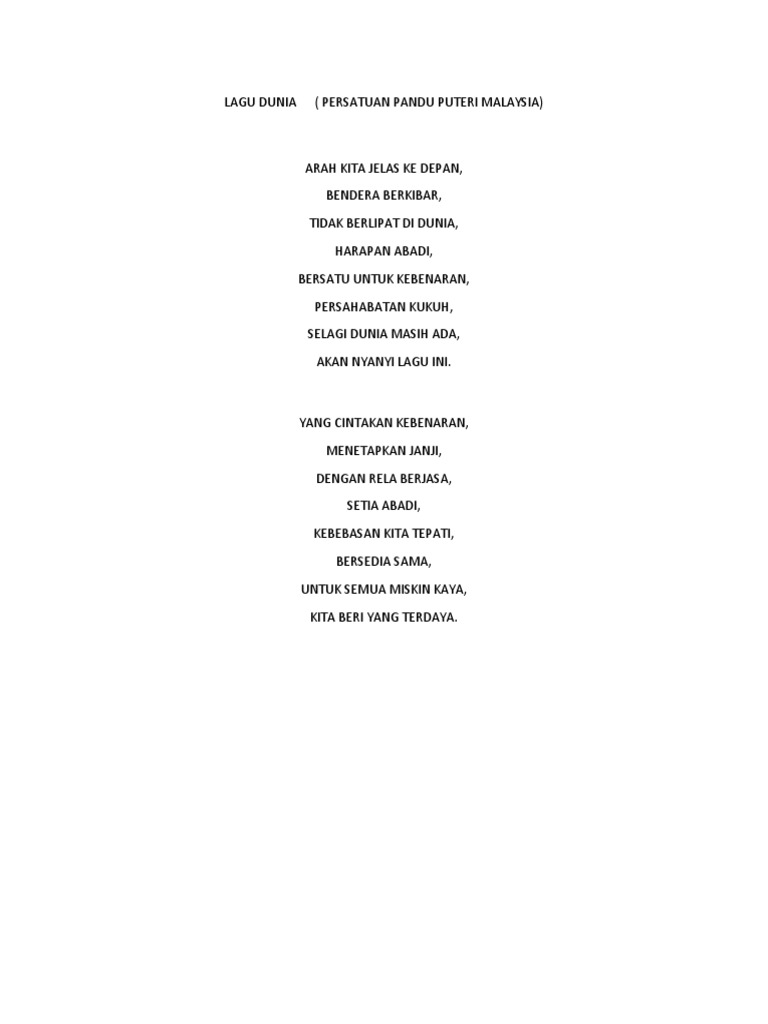 Lagu Dunia Pandu Puteri Arah Kita Jelas Ke Depan Bendera Berkibar Tidak Berlipat Di Dunia Harapan Abadi Bersatu Untuk K Puteri