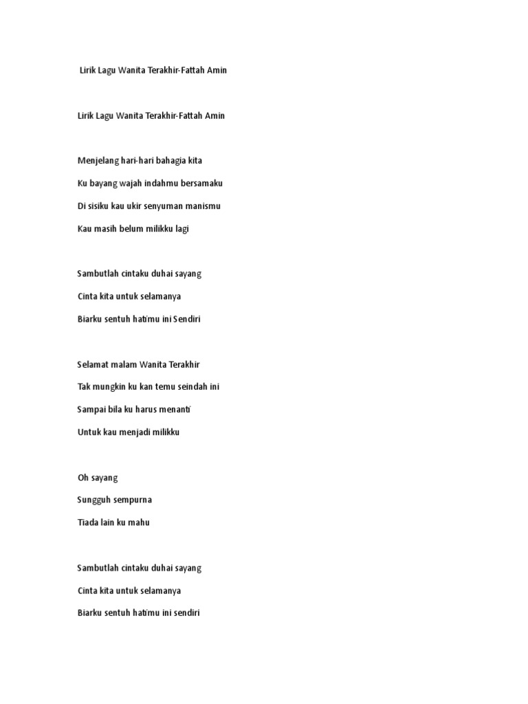 Lirik Lagu Wanita Terakhir Fattah Amin Youtube